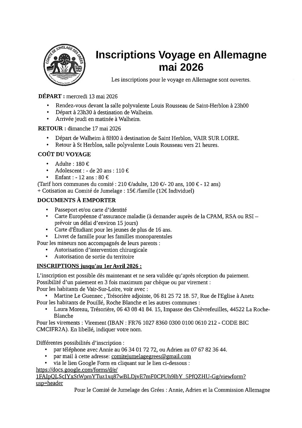Inscription voyage en Allemagne en mai 2026